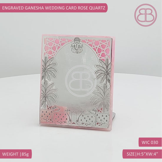 Engraved Ganesha Wedding Card - Rose Quartz