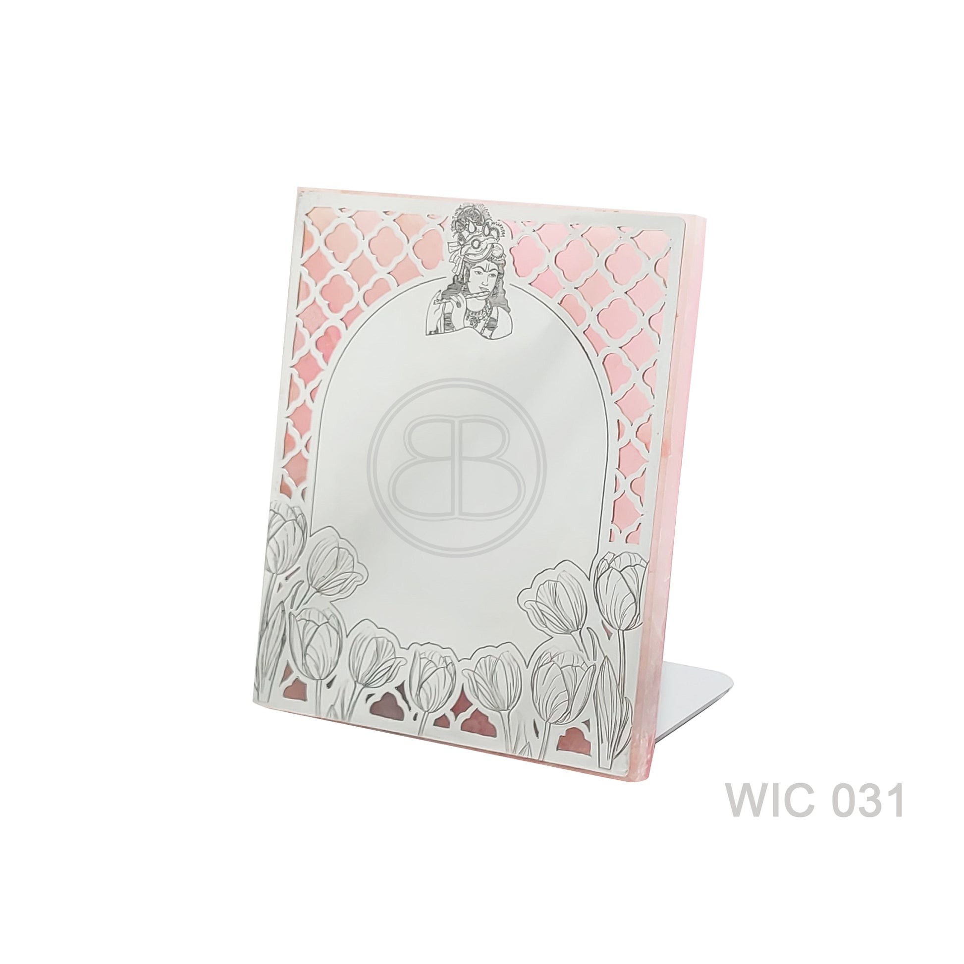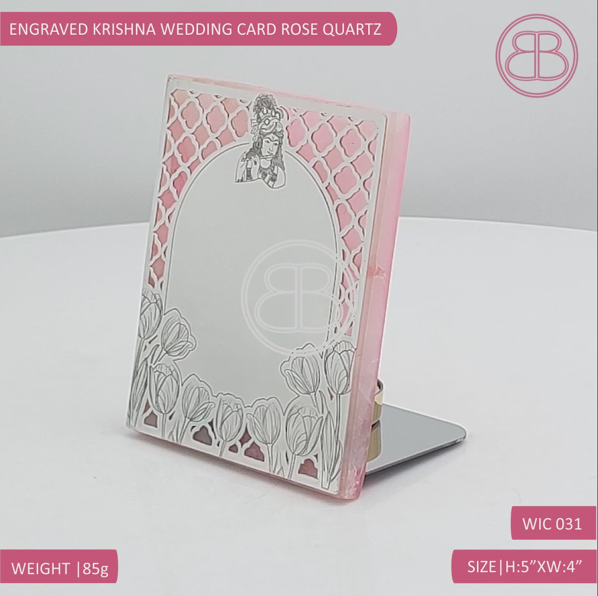 Engraved Krishna Wedding Card - Rose Quartz